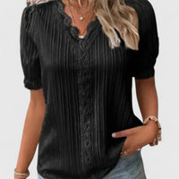 Turn heads this summer with this effortlessly chic V-neck blouse, combining breathable comfort with subtle, stylish details.